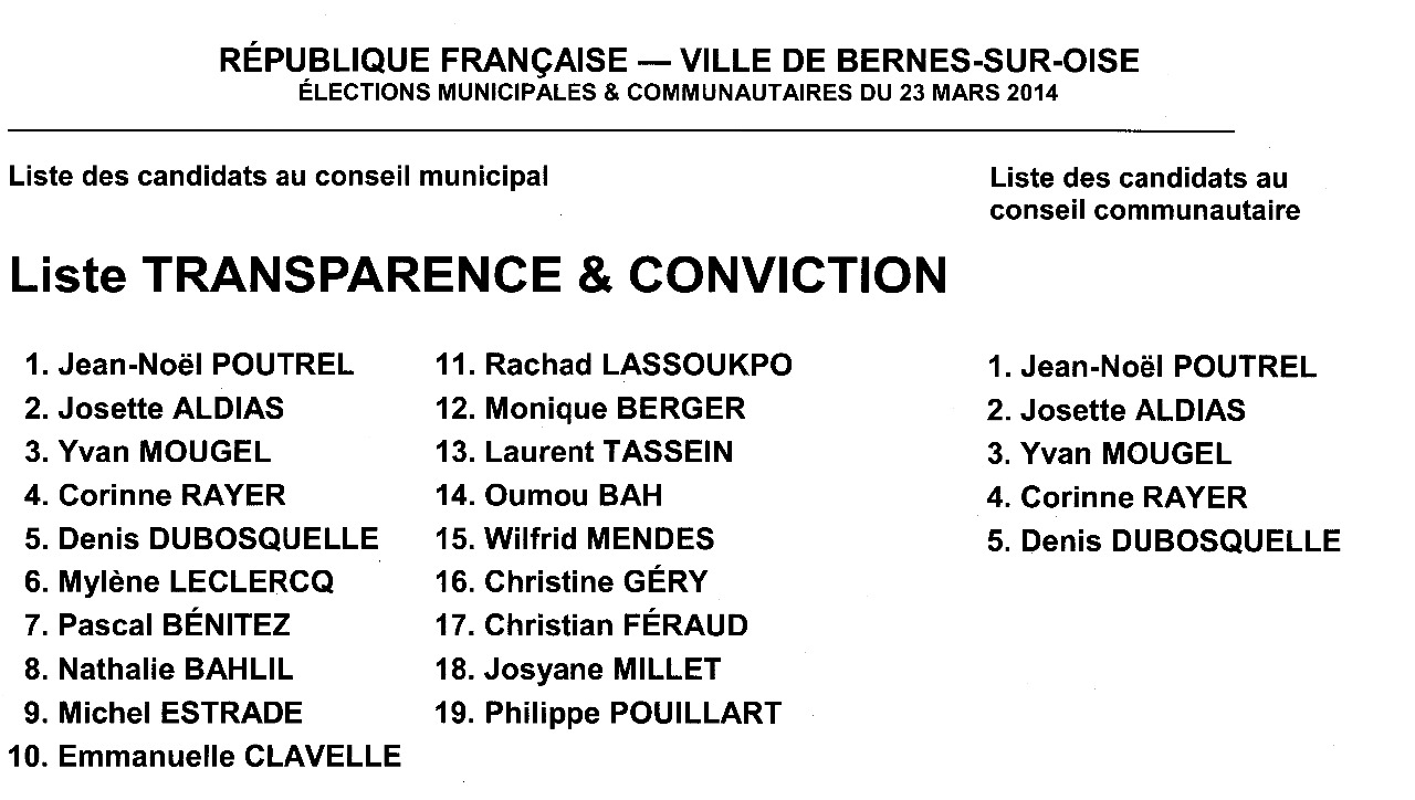 Pour cette prochaine élection les règles ont changé à BERNES SUR OISE. Aucun panachage, aucune rature, aucun rajout n'est autorisé.